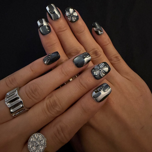 Dark Realm Blossom Nails - Short