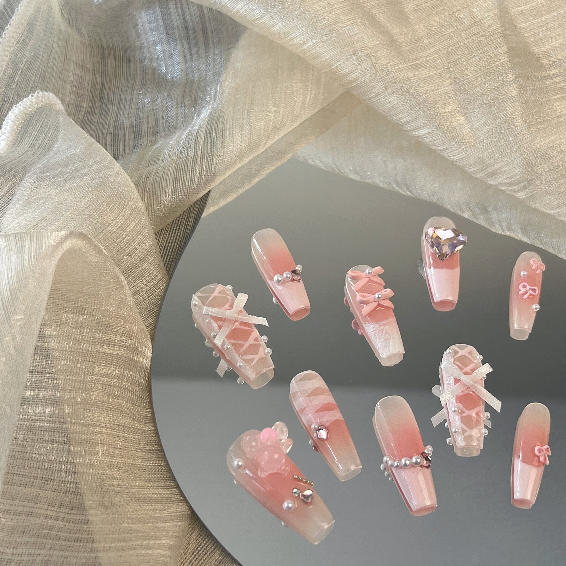 Quality & Durability: Handcrafted with premium salon-grade gel, Blush Ballet Dreams Nails are designed for durability and a chip-resistant finish. With careful application and gentle removal, these nails are reusable, offering an eco-friendly and budget-conscious way to enjoy stunning nail art. Choose adhesive tabs for 3-7 days of wear or solid nail glue with UV lamp curing for up to 4 weeks of flawless elegance.