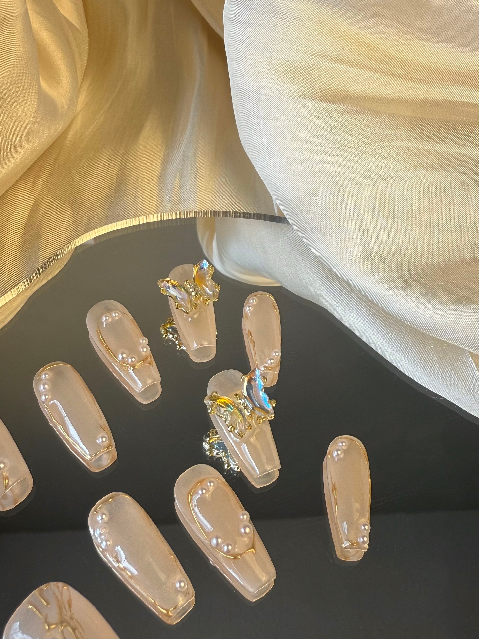 Revel in opulence with Butterfly Baroque Nails by Luminails, where luxury meets regal artistry in our handmade press-on nails. Crafted by expert artisans, these nails deliver salon-quality sophistication in just 10 minutes, complete with a free toolkit included with every purchase. 💅