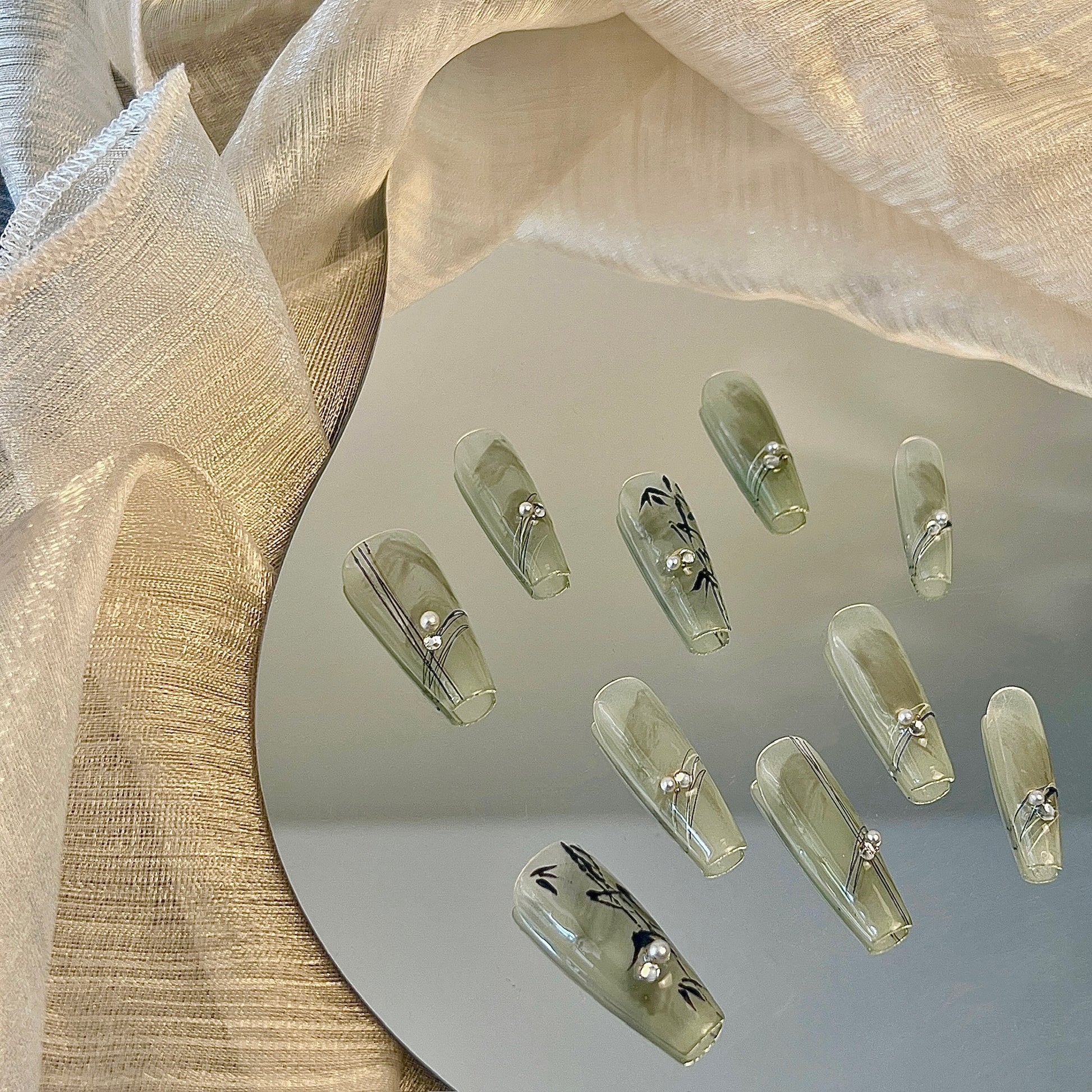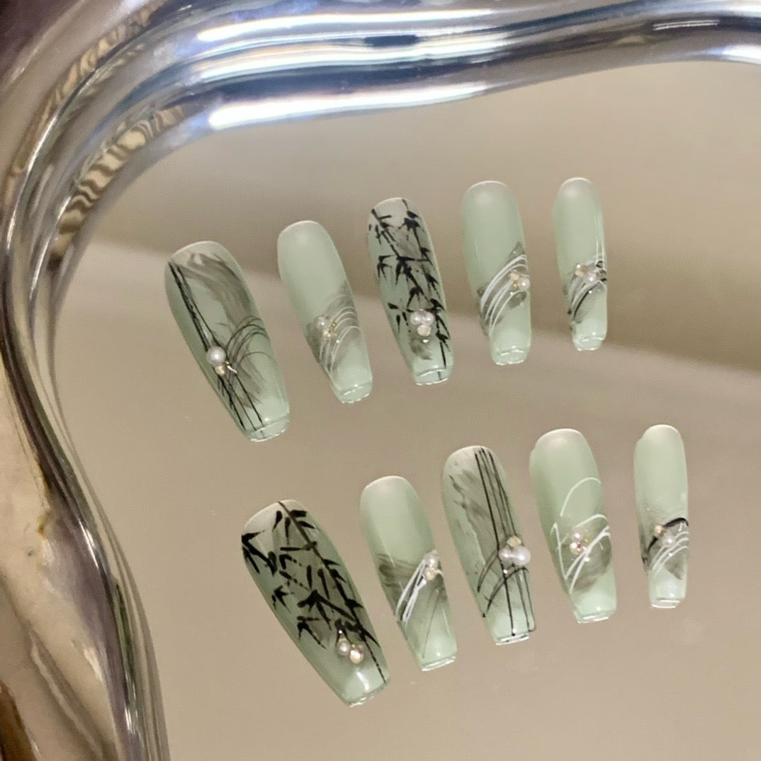 Quality & Durability: Handcrafted with premium salon-grade gel, Chilled Mist Bamboo Nails are designed for durability and a chip-resistant finish. With careful application and gentle removal, these nails are reusable, offering an eco-friendly and budget-conscious way to enjoy stunning nail art. Choose adhesive tabs for 3-7 days of wear or solid nail glue with UV lamp curing for up to 4 weeks of flawless elegance.