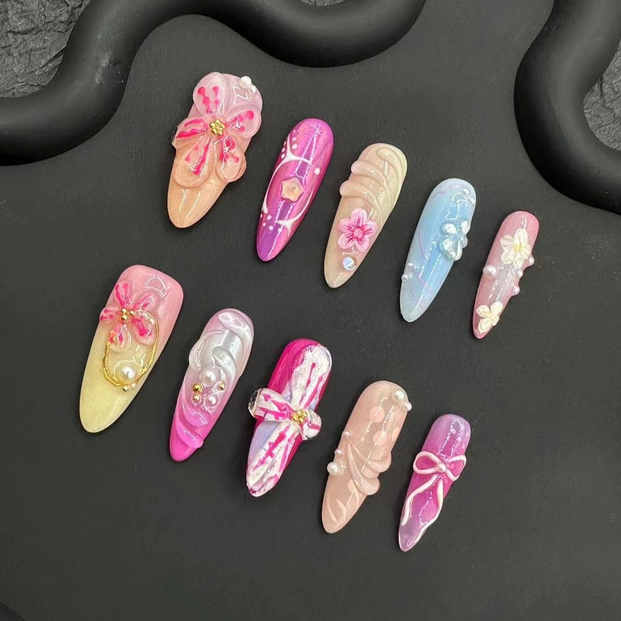 Quality & Durability: Handcrafted with premium salon-grade gel, Floral Fantasy Nails are designed for durability and a chip-resistant finish. With careful application and gentle removal, these nails are reusable, offering an eco-friendly and budget-conscious way to enjoy stunning nail art. Choose adhesive tabs for 3-7 days of wear or solid nail glue with UV lamp curing for up to 4 weeks of flawless elegance.