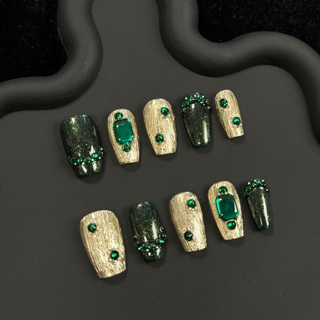 Radiate opulence with Golden Jade Nails by Luminails, where luxury meets nature’s elegance in our handmade press-on nails. Crafted by expert artisans, these nails deliver salon-quality sophistication in just 10 minutes, complete with a free toolkit included with every purchase. 💅