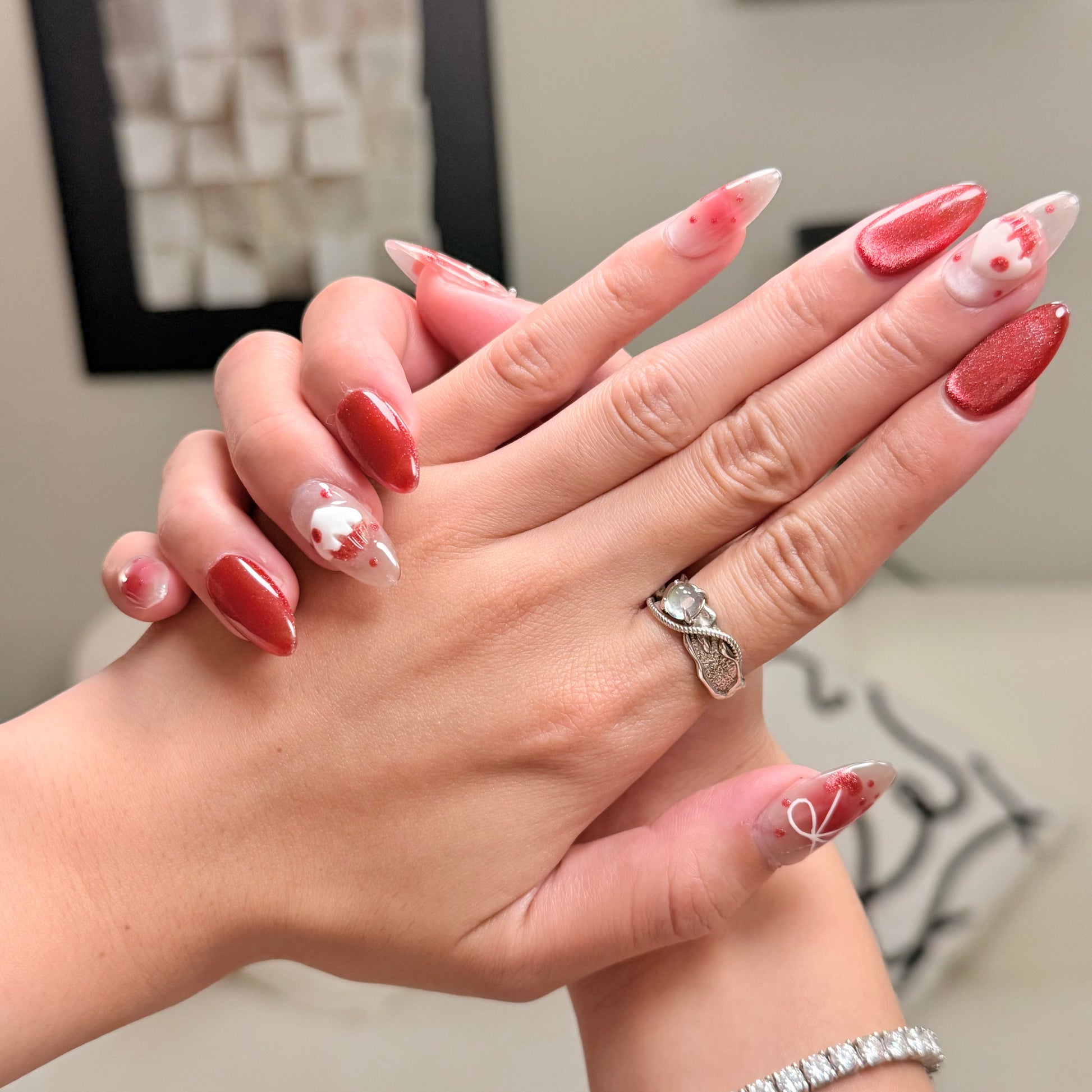 Free Shipping on Orders Over $59! ✨ Transform your nails with the delectable charm of Luminails’ Strawberry Cake Almond Nails. ✨