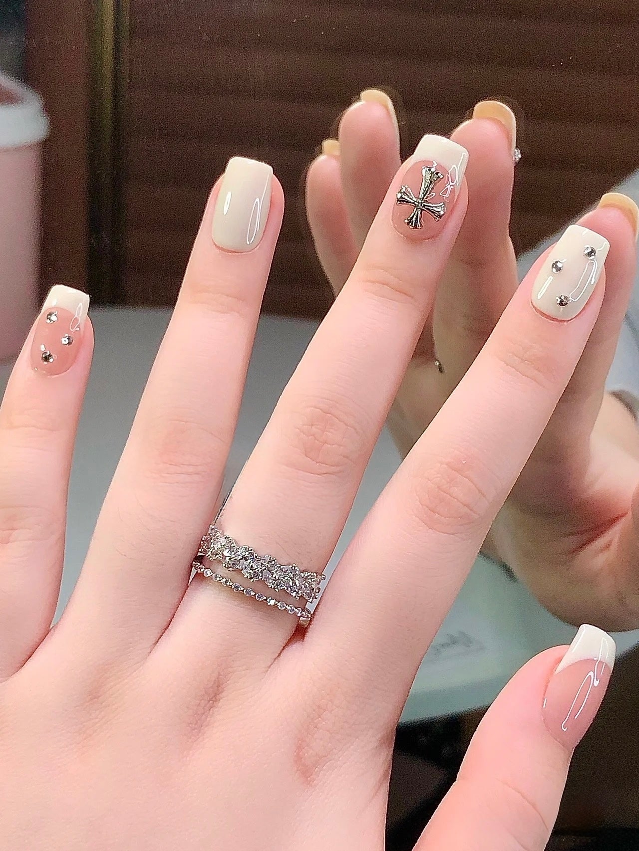 Design & Inspiration: Yogurt French with Heart Nails bring a fresh twist to the classic French manicure. Featuring a soft, creamy white base with delicate pink heart accents, these short-length nails exude a sweet, romantic vibe. The subtle shimmer and clean lines make them perfect for those who love a feminine, understated look with a touch of whimsy, ideal for brunches, dates, or everyday chic.