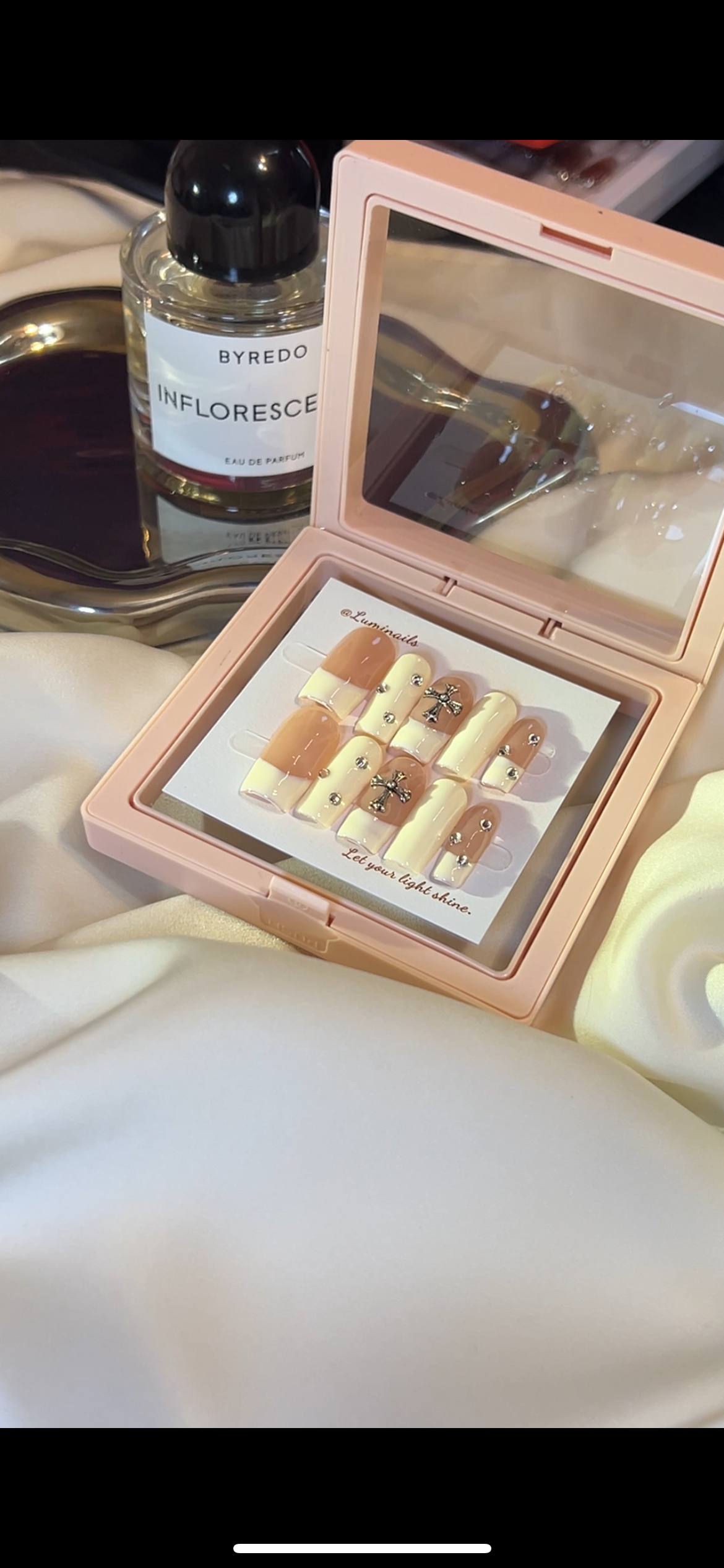Elevate your style with Yogurt French with Heart Nails by Luminails, where luxury meets playful charm in our handmade press-on nails. Crafted by skilled artisans, these nails offer salon-quality elegance in just 10 minutes, complete with a free toolkit included with every purchase. 💅